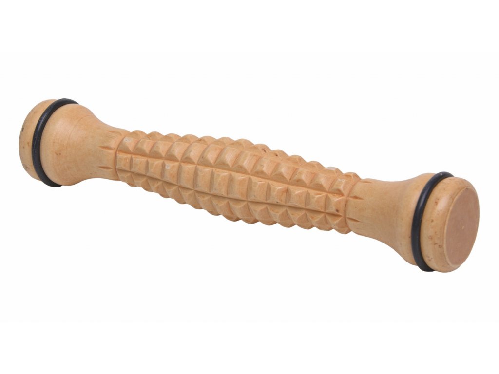 Drevený masážny valček slúži na akupresúrnu masáž nôh.
